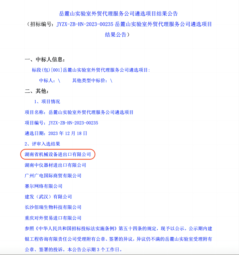 新年“开门红”!设备进出口公司成功中标岳麓山实验室外贸综合服务项目