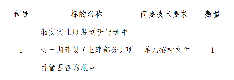 1.采购项目名称:湘安实业服装创研智造中心一期建设(土建部分)项目管理咨询服务。
