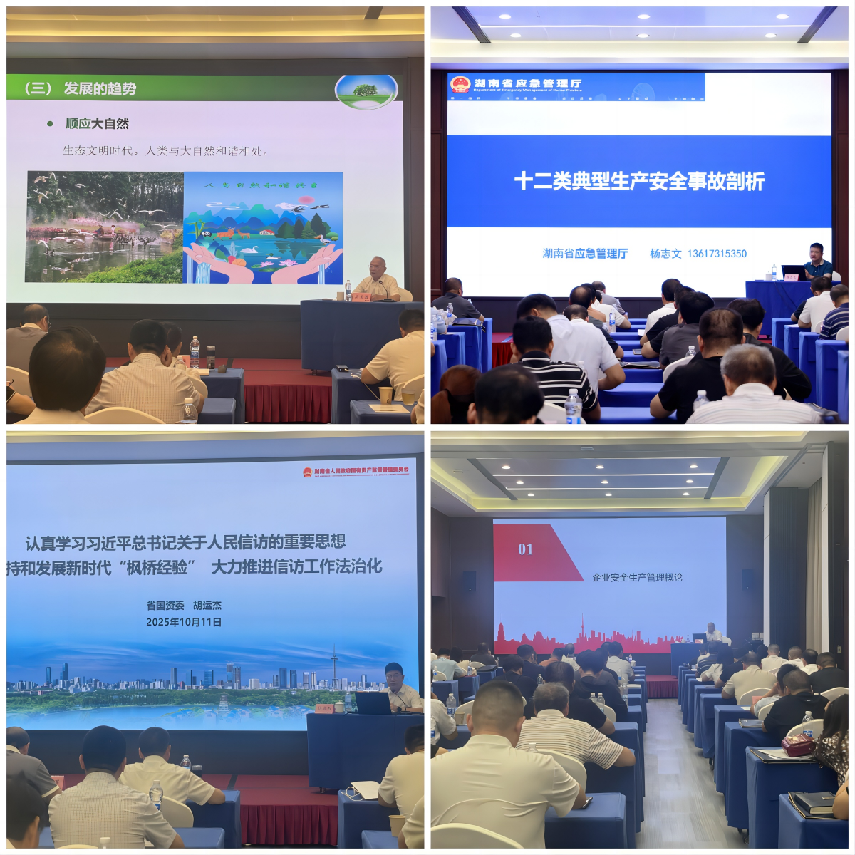 培训班邀请了省应急管理厅、省国资委及有关高校、协会的领导和专家,围绕学习贯彻习近平总书记关于安全生产、人民信访重要思想、习近平生态文明思想,开展全省安全环保稳定工作形势分析和警示教育,举一反三深入剖析十二类典型生产安全事故。会上,华升股份、公路物资、湖南招标作安全环保稳定工作经验分享。